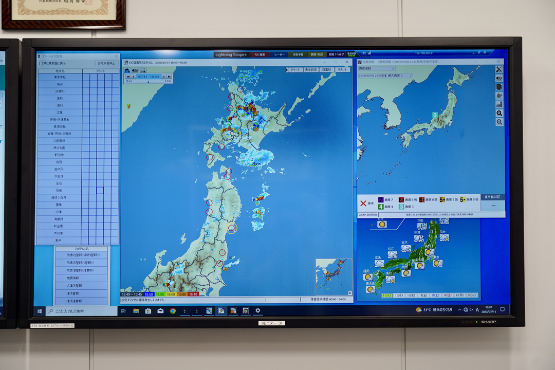 選定の際は気象庁が提供する落雷情報とLightning Scope+を約2年間、並行して運用しました。比較検討の結果、監視の精度が高く、検知した落雷情報をアラーム機能でわかりやすく通知できるLightning Scope+を選びました。