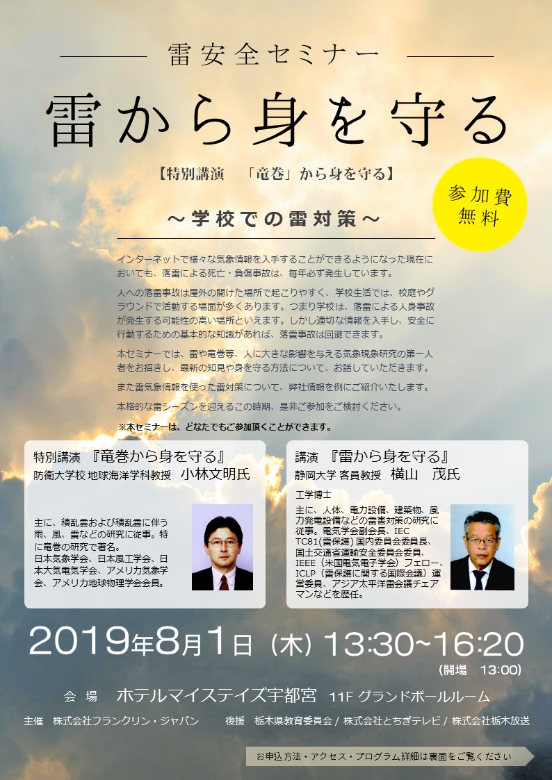 最新の雷や竜巻等の知見についてお話し頂きます。
