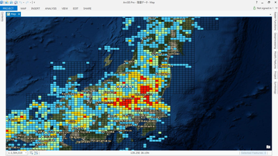 落雷データはEsri社製のGISソフトウェア、「ArcGIS」 上で展開することができ、防災基礎情報としての利用が見込まれます。