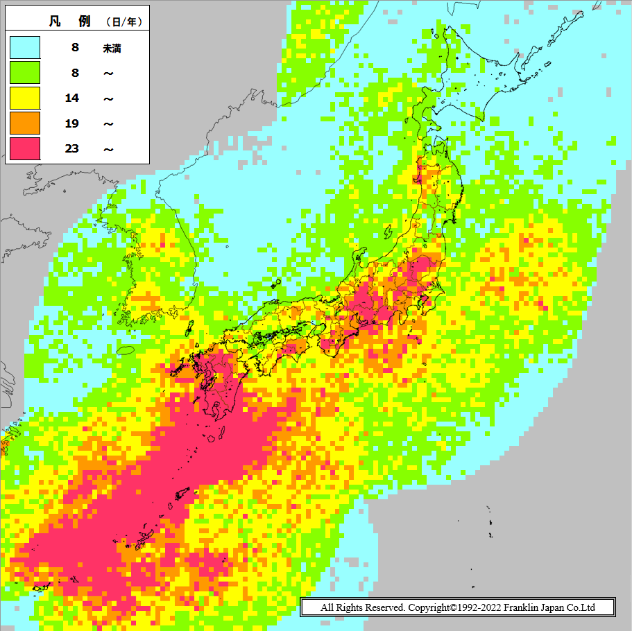 調査期間:2020年(4月~9月) 単位:日/年 メッシュサイズ:20km四方