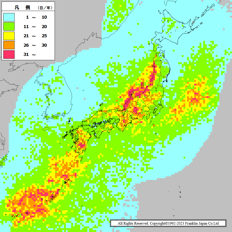 調査期間:2022年 単位:日/年 メッシュサイズ:20km四方