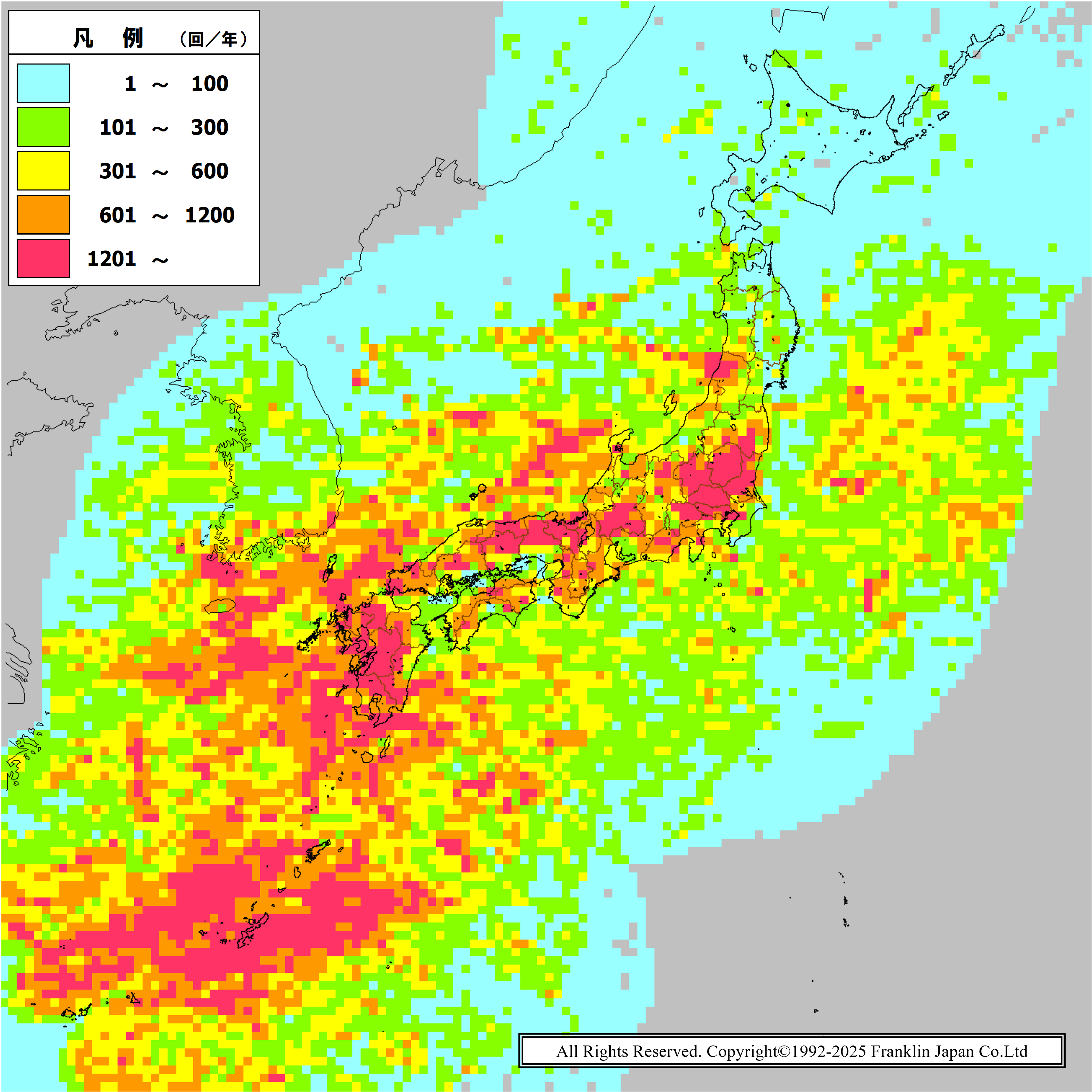 調査期間:2024年 単位:回/年 メッシュサイズ:20km四方