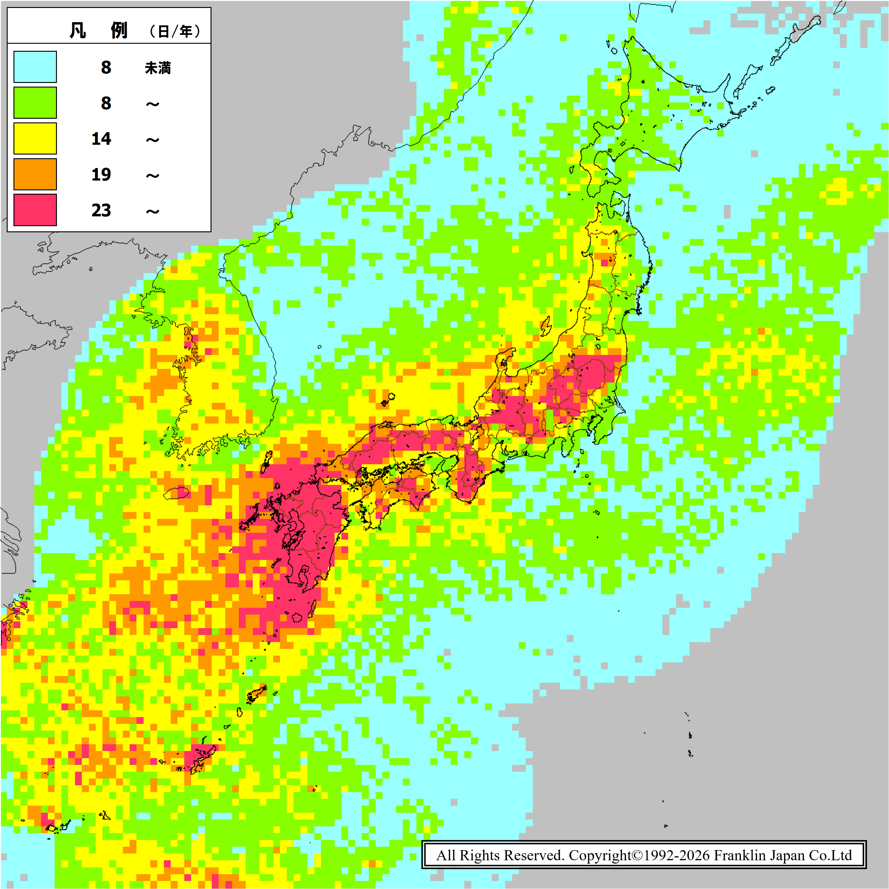 調査期間:2025年(4月~9月) 単位:日/年 メッシュサイズ:20km四方