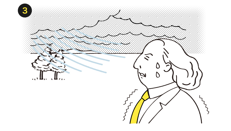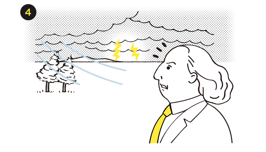 黒い雲が見えて冷たい風が吹いてきたら、雷雲が近づいているサインです。