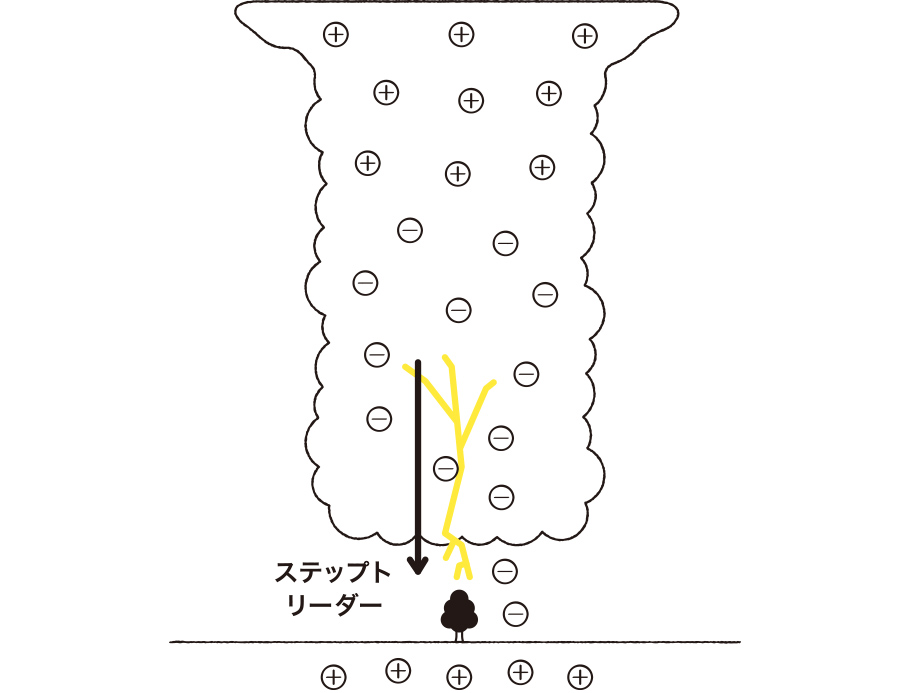このマイナスの電荷がさらに雲下まで移動し、地表に向かいます。