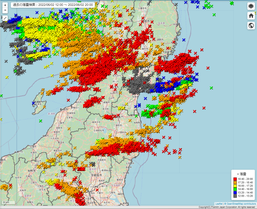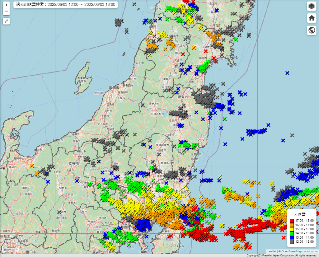 (フランクリン・ジャパンの雷観測システムJLDNの雷観測より)