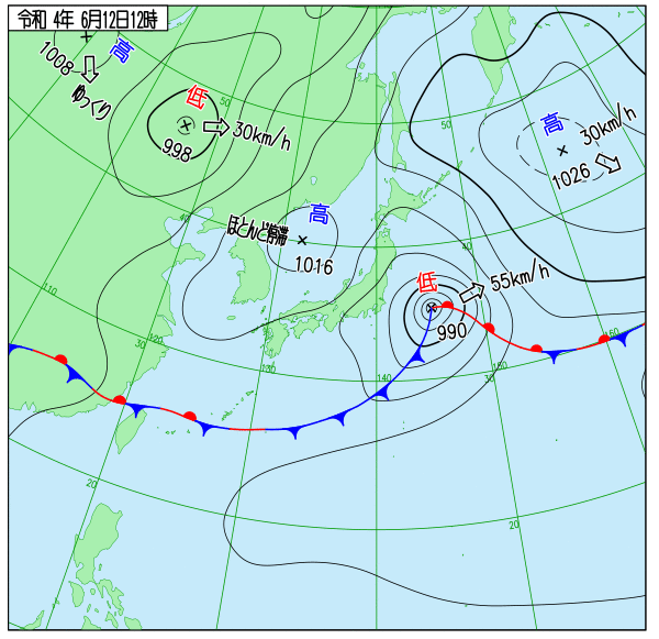 【2022年6月12日12時 実況天気図(気象庁HPより)】