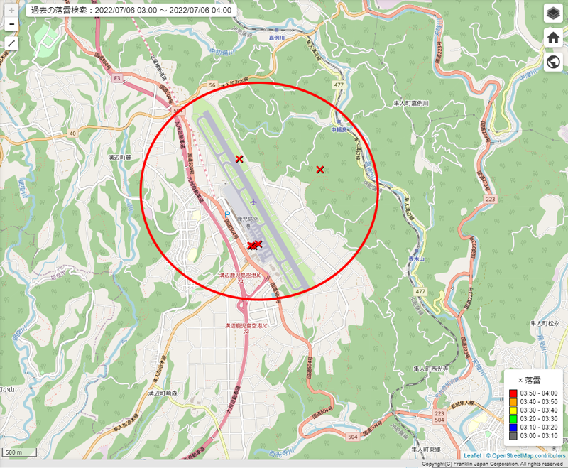 また、下図は7月6日の鹿児島空港の落雷状況です。