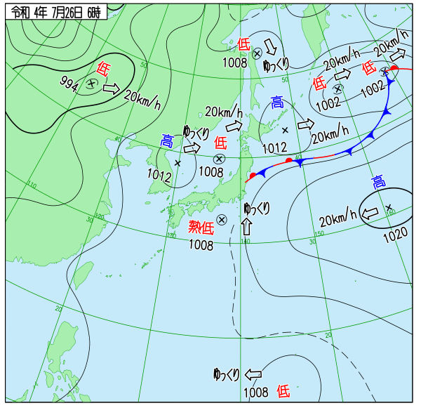【2022年7月26日6時 実況天気図(気象庁HPより)】