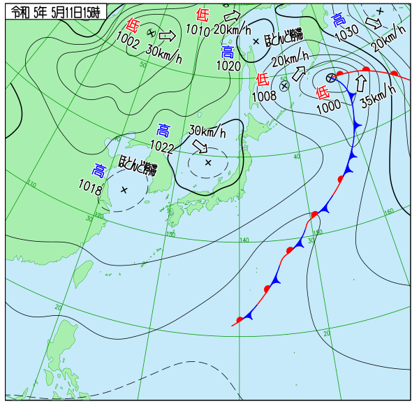 【2023年5月11日15時 実況天気図(気象庁HPより)】
