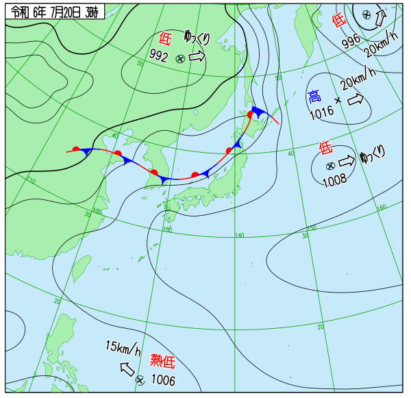 【2024年7月20日3時~21日3時 実況天気図(気象庁HPより)】