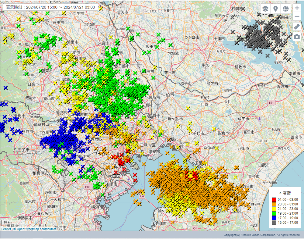 (フランクリン・ジャパンの雷観測システムJLDNの雷観測より)