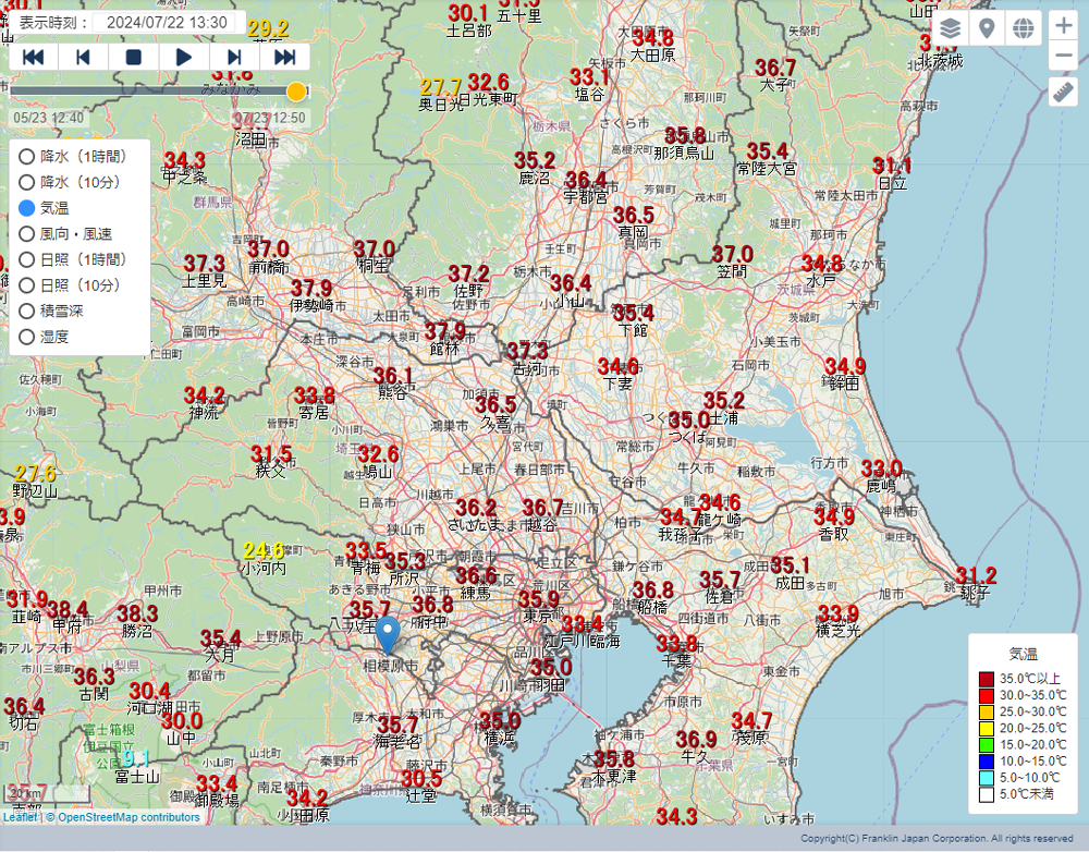 内陸部を中心に気温が上昇し、ほとんどの地点で35℃を超える猛暑日となりました。