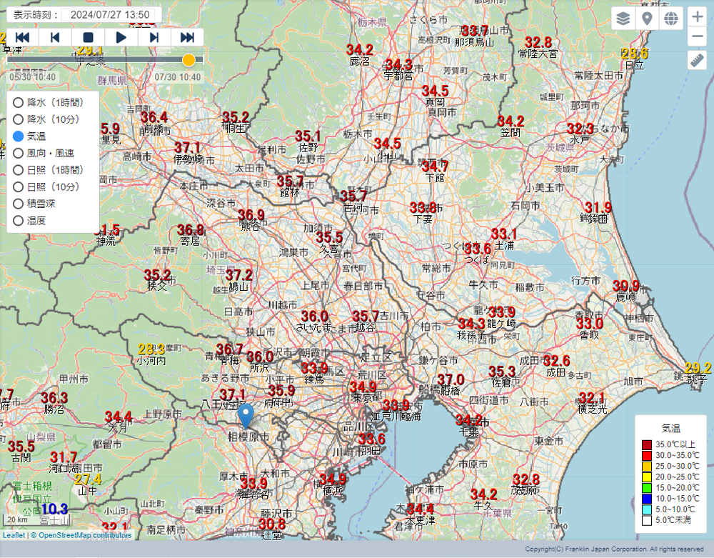 内陸部を中心に気温が上昇し、特に埼玉県では全ての地点で35℃を超えました。
