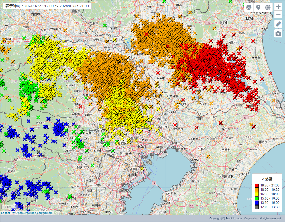 (フランクリン・ジャパンの雷観測システムJLDNの雷観測より)