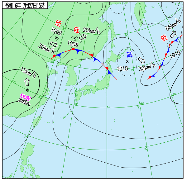 【2024年7月27日15時 実況天気図(気象庁HPより)】
