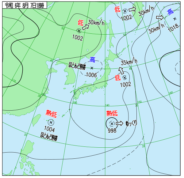 【2024年8月7日18時 実況天気図(気象庁HPより)】