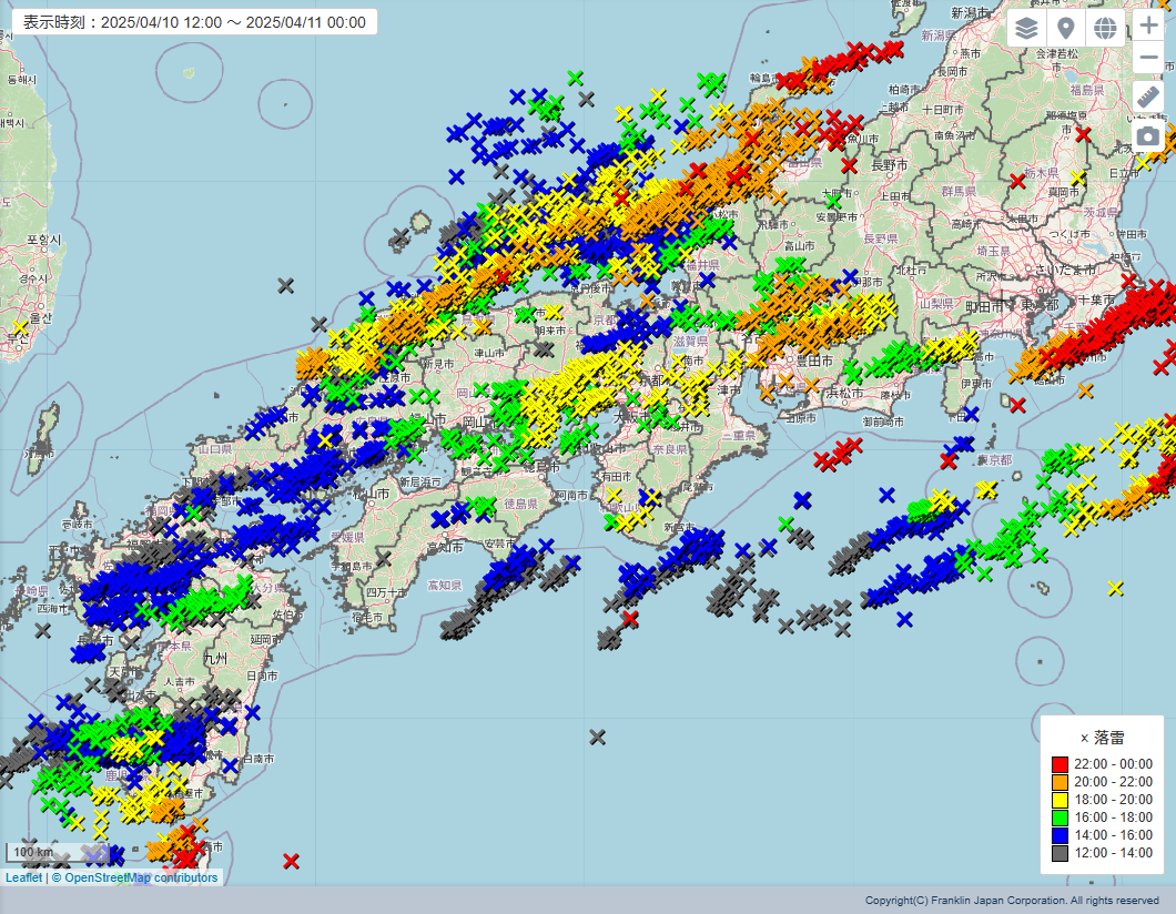 (フランクリン・ジャパンの雷観測システムJLDNの雷観測より)