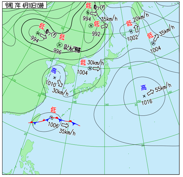 【2025年4月10日15時 実況天気図(気象庁HPより)】