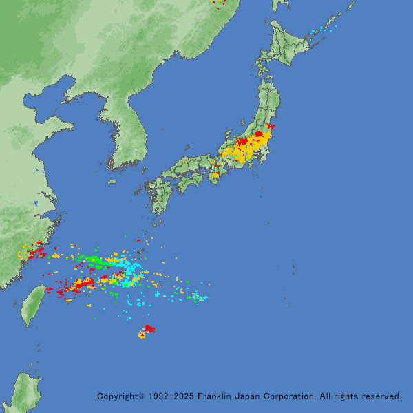 この日は台風7号が沖縄本島の南海上を北上しており、その影響で、南西諸島周辺でも発雷を多数観測しました。