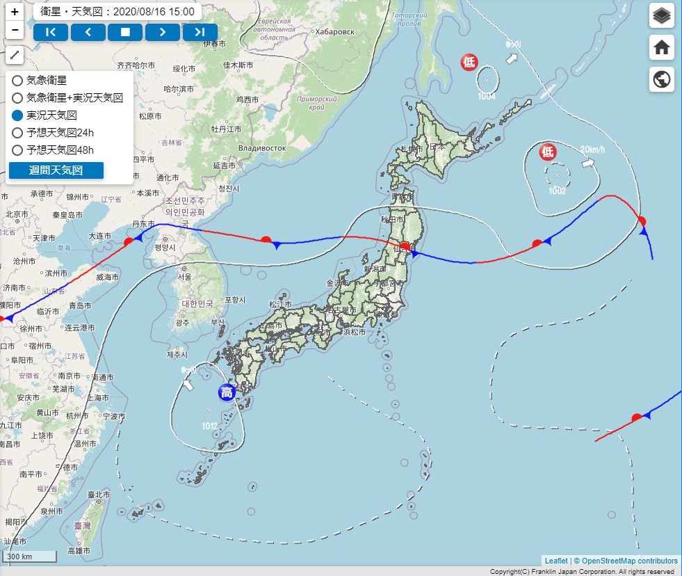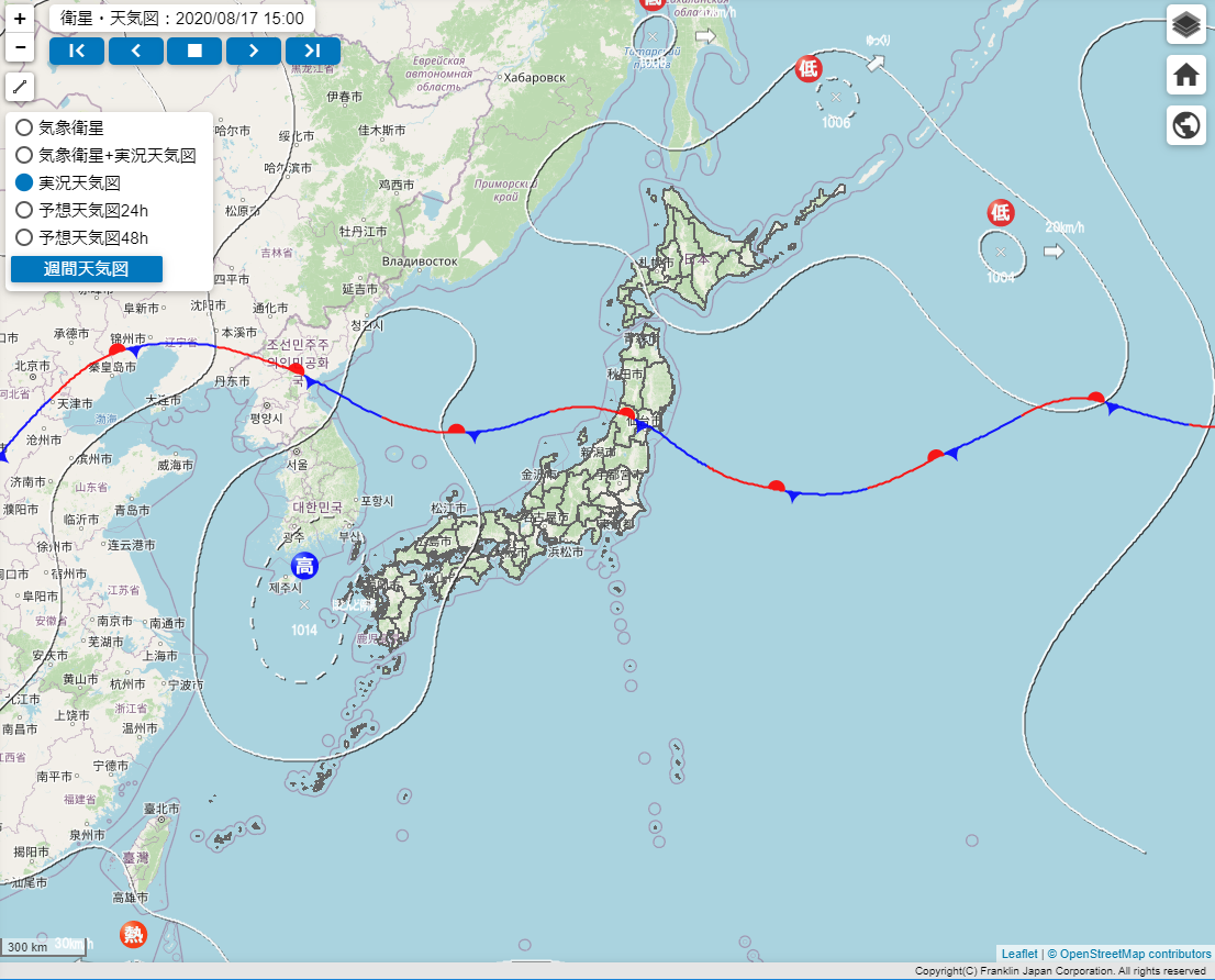 2020年8月16日から17日にかけて、日本付近は西日本を中心に高気圧に覆われ、東北地方南部に前線が停滞していました。