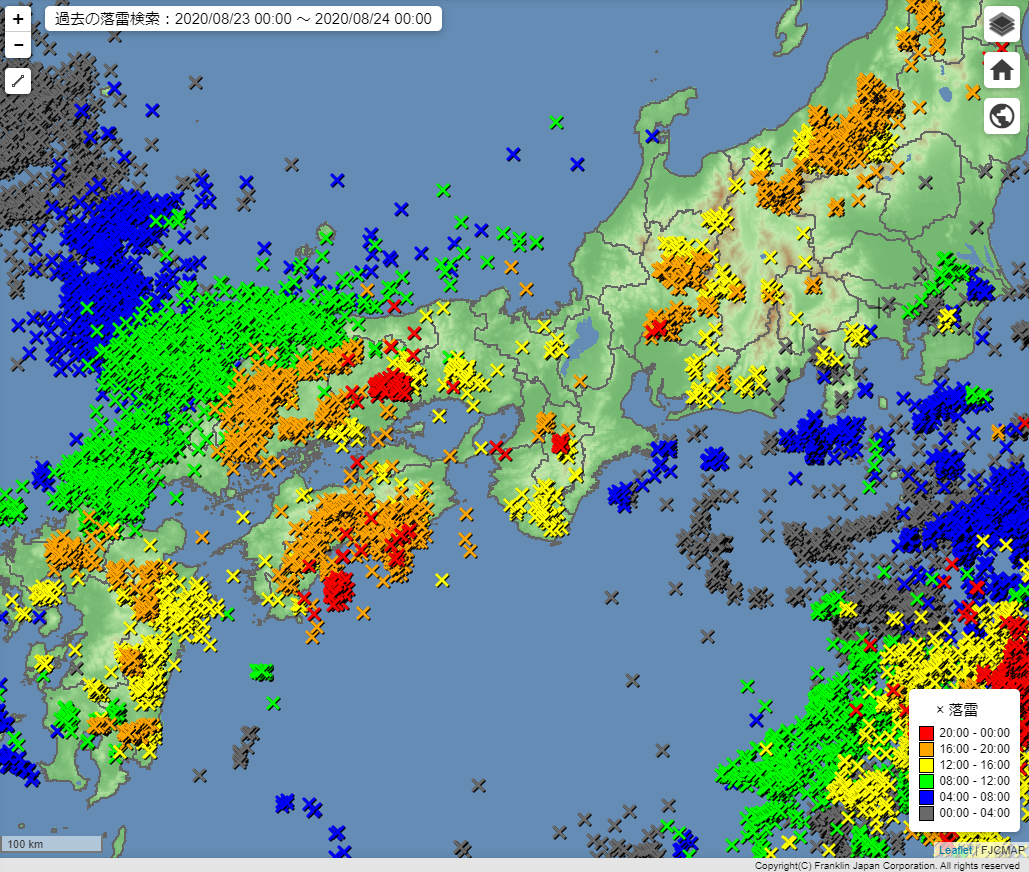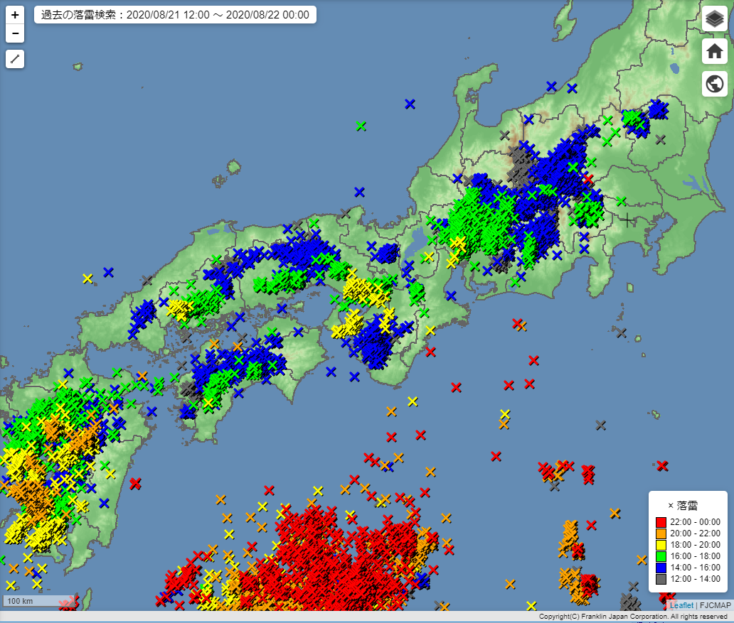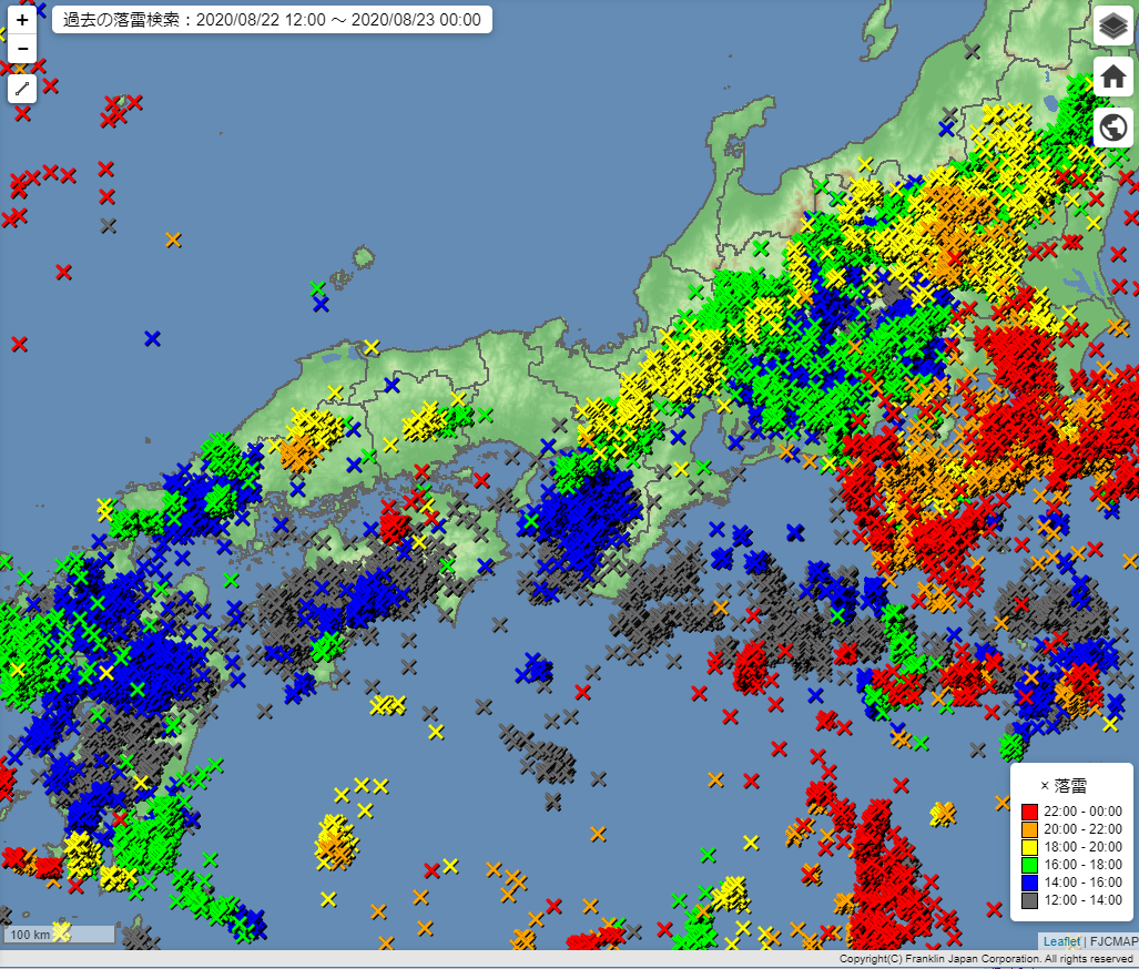 (フランクリン・ジャパンの雷観測システムJLDNの雷観測より)