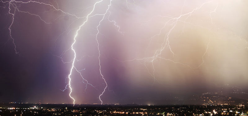 夜に鳴る雷は、昼間に鳴る雷と違って長くなるということわざです。
