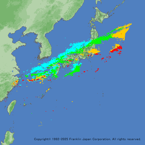 このため前線近傍の東北・北陸・中国・九州地方で落雷を多数観測するとともに、低気圧に向かって暖湿な空気が流入した関東・近畿・四国地方でも多数観測しました。