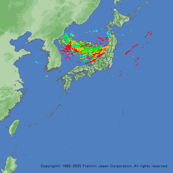 低気圧は北日本を横断・東進しましたが、陸上部では低気圧の活動は弱まり、その後、東の洋上に達すると、再び活発化し、落雷が多数、観測されました。