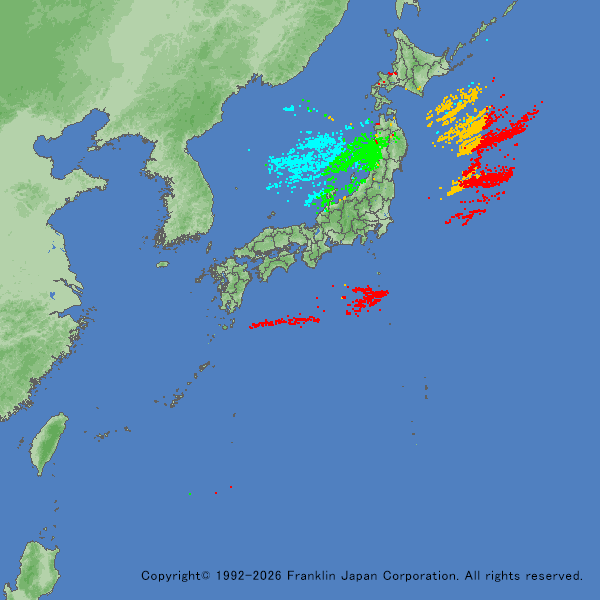 前線の通過時は、日本海洋上と北日本の日本海側で落雷を多数、通過後は太平洋洋上で多数の落雷を観測しました。