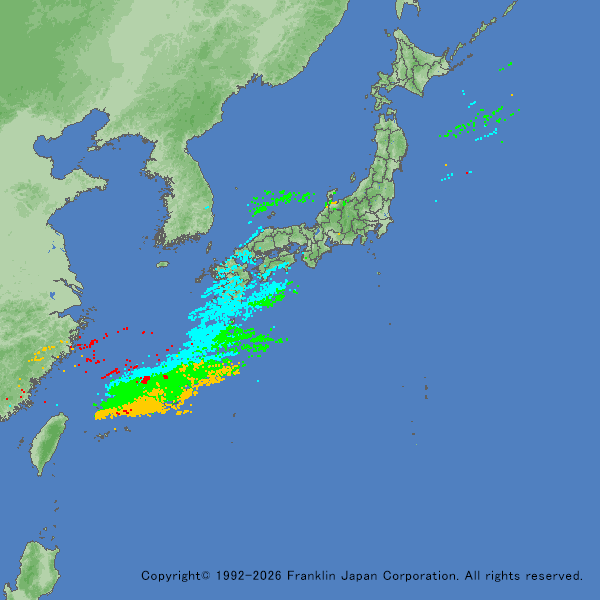 31日、寒冷前線が西日本を東進しました。そのため、九州・沖縄地方とその周辺海上で多数の落雷を観測しました。