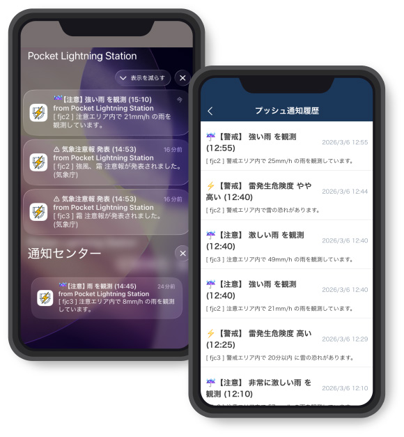 最新の雷の状況をすばやくチェックできます。