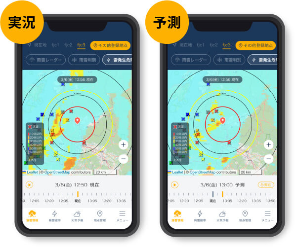 正確な落雷状況をリアルタイムで確認。安全な場所への速やかな避難をサポート。