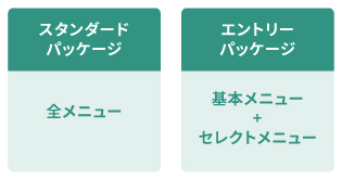 ライトニングスコーププラスの全てのメニュー(※)をご利用頂ける「スタンダードパッケージ」と、基本メニューに必要な情報を追加できる「エントリーパッケージ」をご用意。
