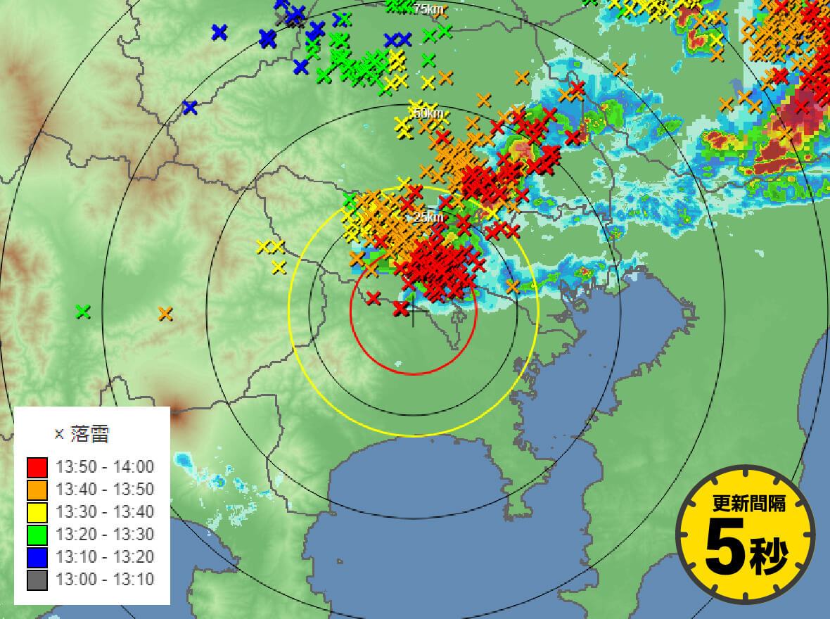 5秒更新の雷情報および雷の予測情報、そして豊富な気象情報を手軽にご覧いただけるWebサービスです。パソコン、タブレット、スマートフォンなど、インターネット環境があれば、いつでも、すぐに情報を確認できます。アラート音やメール通知機能により、雷の発生・接近、雨域の接近に気付くことが可能です。