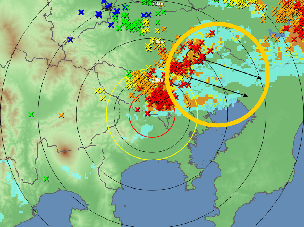 ・雷が収束に向かう場合(30分~1時間後の予測)