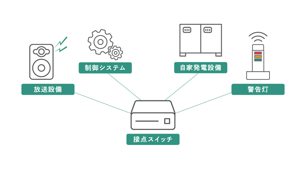 ※接点スイッチから先(施設内設備等)のご用意は、お客様側にてお願いしております。